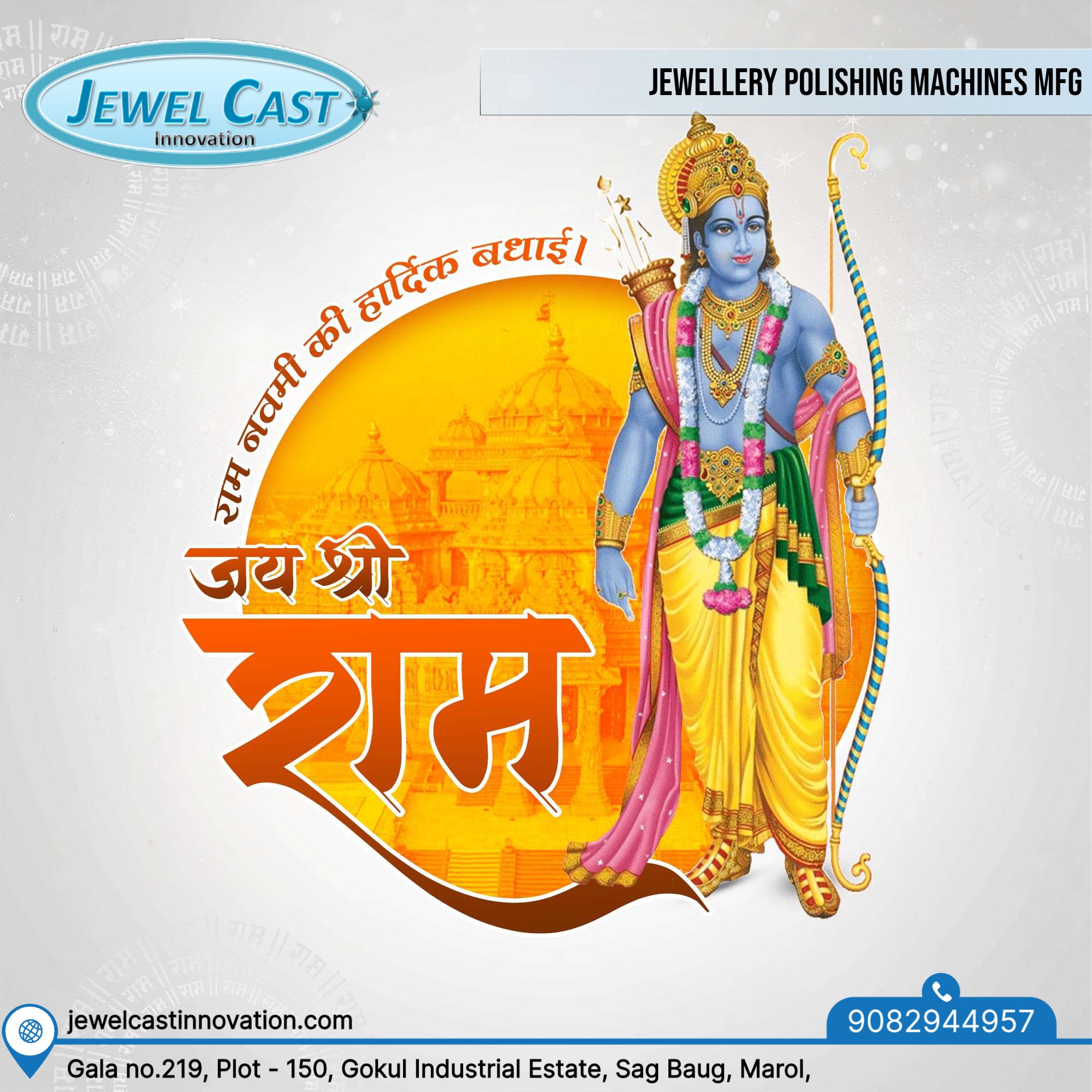 Jewelcast Innovation %he Jewellery Polishing Machines manufacturer In Mumbai wishes you and your Family on Ram Navami , May this auspicious day inspire integrity, strength, and success in all your endeavors. 🌼✨
